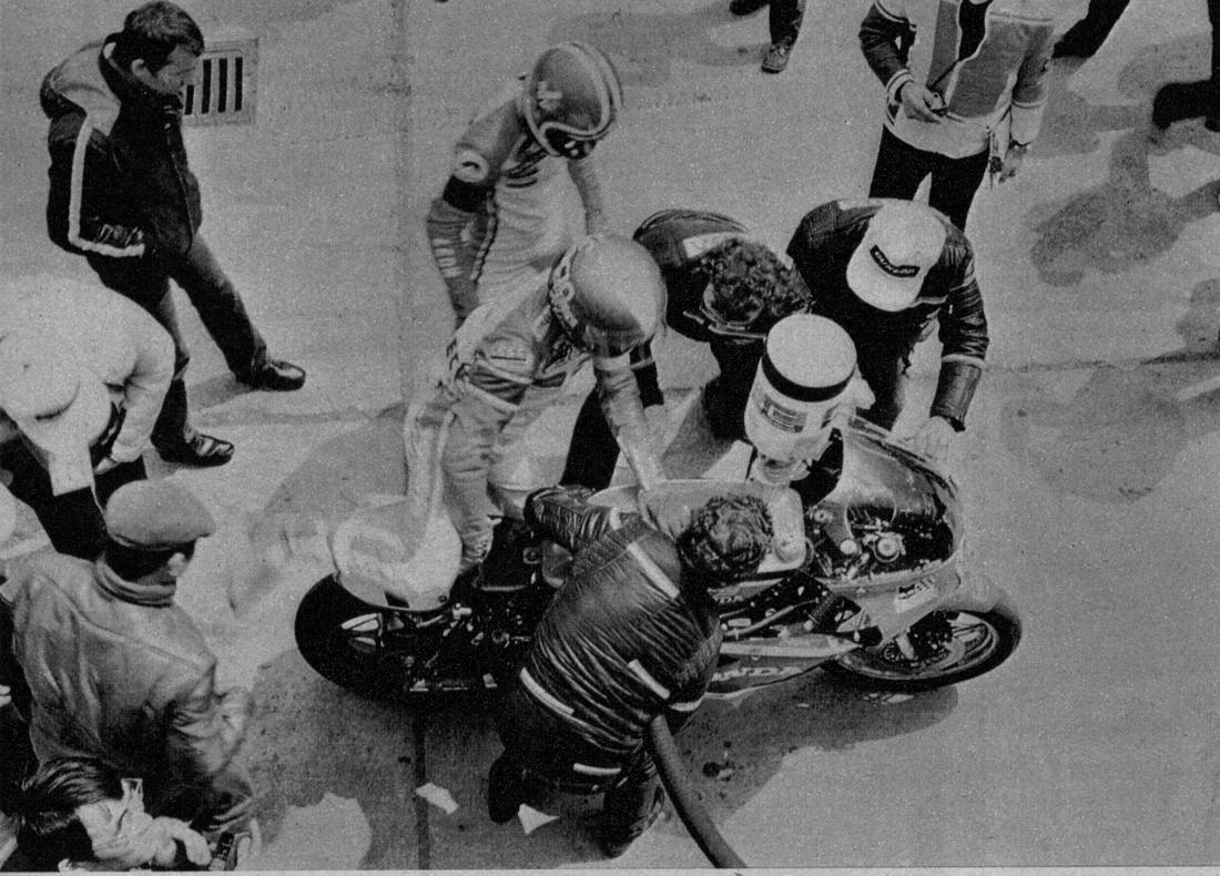 and the bikes had to run on normal commercial petrol. Maximum tank